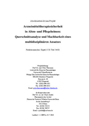 Arzneimitteltherapiesicherheit in Alten- und Pflegeheimen: Querschnittsanalyse und Machbarkeit eines multidisziplinären Ansatzes
