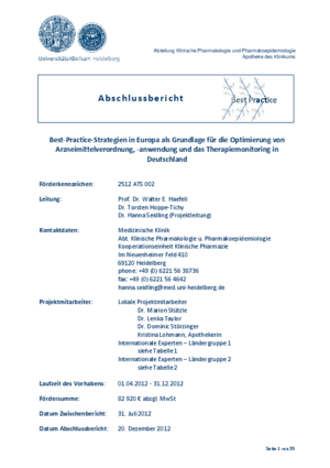 Best-Practice-Strategien in Europa als Grundlage für die Optimierung von Arzneimittelverordnung, -anwendung und das Therapiemonitoring in Deutschland