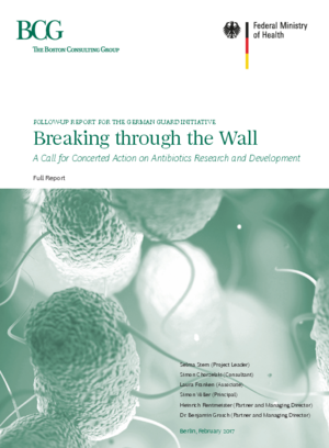 This report was written by The Boston Consulting Group (BCG) for the German Federal Ministry of Health as a follow-up to Breaking through the Wall—Enhancing Research and Development of Antibiotics in Science and Industry of October 2015. The 2015 report laid out ten potential levers for more innovation along the antibiotics value chain. The 2017 follow-up provides detail on four key levers as actionable international policy instruments.