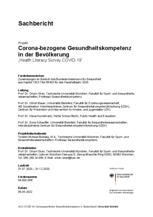 Corona-bezogene Gesundheitskompetenz in der Bevölkerung "Health Literacy Survey COVID-19" (HLS-COVID-19)