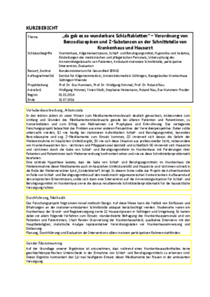Abschlussbericht „...da gab es so wunderbare Schlaftabletten“ – Verordnung von Benzodiazepinen und Z-Substanzen an der Schnittstelle von Krankenhaus und Hausarzt (PDF, nicht barrierefrei, 1 MB)