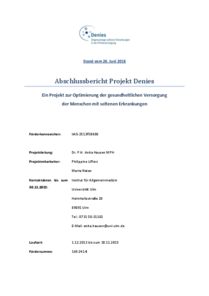 Im Projekt Denies wurde als Ausgangspunkt der Betrachtung auf den Diagnoseweg seltener Erkrankungen die Hausärztin bzw. der Hausarzt gewählt, da er bei gesundheitlichen Beschwerden oftmals die erste Anlaufstelle für seine Patientinnen und Patienten darstellt. Die Hauptzielsetzung des Projektvorhabens war die Bereitstellung und Vermittlung von fundierten Kenntnissen über den Diagnoseweg seltener Erkrankungen. Der Schwerpunkt lag auf den Einflussfaktoren, die den Diagnoseweg aus Sicht der Hausärztinnen bzw. -ärzte, Fachärztinnen bzw. -ärzte und Patientinnen bzw. Patienten beeinflussen.