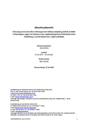 Erfassung unerwünschter Wirkungen der Influenzaimpfung mittels mobiler Technologien (Apps) im Rahmen einer epidemiologischen Pilotstudie unter Einbindung von Betriebsärzten (VigilVacMobile)