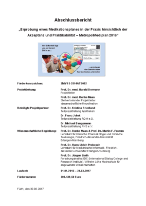 Erprobung eines Medikationsplanes in der Praxis hinsichtlich der Akzeptanz und Praktikabilität - MetropolMediplan 2016