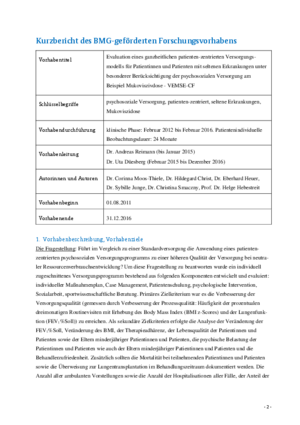 Evaluation eines ganzheitlichen patienten-zentrierten Versorgungs-modells für Patientinnen und Patienten mit seltenen Erkrankungen unter besonderer Berücksichtigung der psychosozialen Versorgung am Beispiel Mukoviszivdose - VEMSE-CF