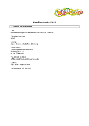 Ausreichende Bewegung mit einer ausgewogenen Ernährung und positiver Stressbewältigung sind zentrale Bausteine für die Förderung eines gesundheitsfördernden Lebensstils. Das Aktionsbündnis "DAIDALOS", das im Rahmen von "IN FORM- Deutschlands Initiative für gesunde Ernährung und mehr Bewegung" von 2009-2011 durch das BMG gefördert wurde, greift diese Aspekte in vielfältiger und ganzheitlicher Weise auf. Das Projekt richtet sich an Schülerinnen und Schüler der 5. und 6. Klassen einer Münchner Hauptschule, sowie an ihre Eltern und Lehrerinnen und Lehrer. Durch Maßnahmen wie Sportförderunterricht, Adipositasschulung, Bio-Frühstück und Sozialtraining haben sich die Kinder mit dem Thema "Gesundheit" auseinandergesetzt und gesundheitsförderliche Lebensstile eingeübt und selbstständig in ihren Alltag integriert. Viele Aktionen konnten auch über das Projektende hinaus nachhaltig in der Schule verankert werden. Dies ist insbesondere für die Weiterentwicklung der Schule zu einer "gesunden Schule" und die damit einhergehende Implementierung einer gesundheitsförderlichen Schulkultur von Bedeutung.