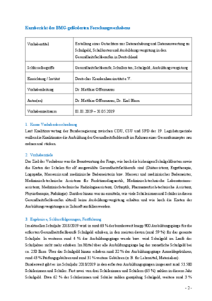 Mit dem vorliegenden Gutachten werden die bundesweiten Daten zur derzeitigen Situation in den Ausbildungen der Gesundheitsfachberufe hinsichtlich des Schulgeldes, der Schulkosten und einer Ausbildungsvergütung erhoben und ausgewertet. Das Gutachten gliedert sich in drei Themenschwerpunkte. Die Schwerpunkte I und II behandeln Fragen des Schulgeldes und der Schulkosten und Schwerpunkt III widmet sich der Ausbildungsvergütung. Umfasst vom Gutachten sind folgende Gesundheitsfachberufe: