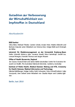 Gutachten zur Verbesserung der Wirtschaftlichkeit von Impfstoffen in Deutschland