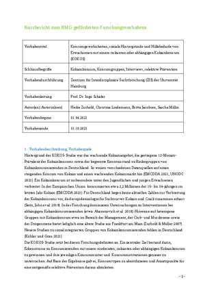 Kurzbericht "Konsumgewohnheiten, soziale Hintergründe und Hilfebedarfe von Erwachsenen mit einem riskanten oder abhängigen Kokainkonsum (KOKOS)"