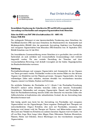 Kurzfassung der Gutachten des PEI und BfArM zur parenteralen Anwendung von Frischzellen und xenogenen Organextrakten beim Menschen