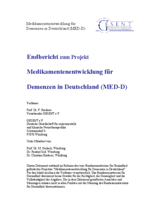 "Medikamentenentwicklung für Demenzen in Deutschland" des Vereins GESENT e.V.