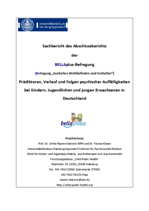 Ziel der BELLA-Studie ist die Analyse von Auftretenshäufigkeiten, Entwicklungsverläufen und relevanten Determinanten psychischer Auffälligkeiten sowie die Inanspruchnahme von Leistungen des Versorgungssystems. Die überwiegende Mehrheit der Befragten in BELLAplus stellt sich als psychisch unauffällig dar. Insgesamt konnten bei 11,1% der Mädchen und 15,4% der Jungen im Alter von 9 bis 17 Jahren Hinweise auf psychische Auffälligkeiten festgestellt werden. Der Anteil an Befragten, deren psychische Auffälligkeiten chronifizieren, beträgt knapp 3%. Sie sind zu mindestens drei Messzeitpunkten auffällig und damit als dauerhaft auffällig einzustufen. Hinsichtlich Risiken und Schutzfaktoren wurde das Vorliegen elterlicher Psychopathologie als Risikofaktor für eine depressive Symptomatik identifiziert, wohingegen Selbstwirksamkeit, ein positives Familienklima und soziale Unterstützung Schutzfaktoren sind, die das Risiko einer Erkrankung und die Schwere bereits bestehender depressiver Symptomatik mindern. Zudem konnte festgestellt werden, dass psychische Auffälligkeiten langfristig mit negativen Auswirkungen einhergehen können. Dauerhaft bestehende psychische Auffälligkeiten gehen bei beiden Geschlechtern mit einer Verminderung der Lebensqualität und verminderten schulischen Erfolgen einher. Nur 56,1% der Betroffenen geben an, aufgrund einer diagnostizierten psychischen Erkrankung in Behandlung zu sein, wobei Mädchen etwas häufiger entsprechende Hilfe annehmen. Die Behandlungsquote nimmt mit steigendem sozioökonomischem Status zu. Die Mehrzahl der von psychischen Auffälligkeiten Betroffenen wählt ihr näheres Umfeld als ersten Ansprechpartner. Das Erkennen eines Behandlungsbedarfs und entsprechende Aufsuchen von Versorgungsangeboten liegt oft in den Händen der Familie und Eltern. Daraus ergibt sich die Notwendigkeit von Psychoedukation und Antistigmatisierungsarbeit vor allem bei den Eltern. Des Weiteren konnte gezeigt werden, dass viele Betroffene Hilfe bei einem Lehrkörper suchen. Dies unterstreicht die Bedeutung von Hilfestellungen im schulischen Bereich. Insgesamt kann herausgestellt werden, dass ein multidisziplinärer Ansatz ein wichtiger Faktor im Rahmen von Präventionsmaßnahmen ist.