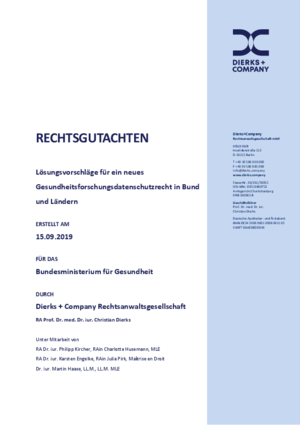 Rechtsgutachten: Lösungsvorschläge für ein neues Gesundheitsforschungsdatenschutzrecht in Bund und Ländern