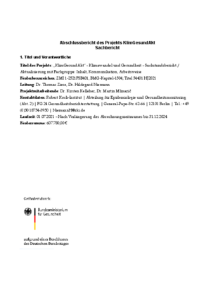 Sachstandsbericht: Klimawandel und Gesundheit „KlimGesundAkt“