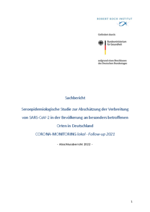 Im Frühjahr 2020 wurde vom Robert Koch-Institut in vier besonders betroffenen Gemeinden (Kupferzell, Bad Feilnbach, Straubing und Berlin-Mitte) eine bevölkerungsbezogene seroepidemiologische Studie durchgeführt (CORONA-MONITORING lokal). Um das Vorhandensein von Antikörpern sowie einer T-Zell-Antwort gegen SARS-CoV-2 in der Bevölkerung im Verlauf der Pandemie zu untersuchen, wurden die Teilnehmenden zu einer erneuten Befragung und Blutuntersuchung im Rahmen der Folgestudie CORONA-MONITORING lokal - Follow-up (Laufzeit 01. 03.2021-31.12.2021) eingeladen.