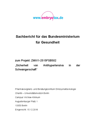 Im Rahmen des vom 15. Oktober 2015 bis 14. Oktober 2018 vom Bundesministerium für Gesundheit (BMG) geförderten Projekts wurden die im oben genannten PVZ Embryonaltoxikologie dokumentierten Schwangerschaftsverlaufsdaten im Zusammenhang mit der Anwendung ausgewählter blutdrucksenkender Arzneimittel ausgewertet. Das Projekt untersuchte in diesem Zusammenhang unterschiedliche Arzneimittel und Arzneimittelgruppen, z.B. Methyldopa, Betablocker und Renin-Angiotensin-Hemmstoffe (RAS-Inhibitoren); Ziel der verschiedenen Teilprojekte des Vorhabens war es insbesondere, das Risiko dieser Medikamente für die (vorgeburtliche) Entwicklung des Kindes besser einschätzen und präzisieren zu können. Ein weiterer Schwerpunkt des Projektes lag in der Weiterentwicklung statistischer Methoden.