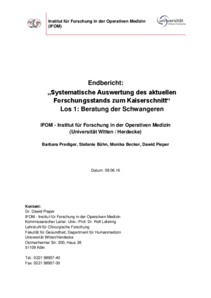 Systematische Auswertung des aktuellen Forschungsstands zum Kaiserschnitt - Los 1: Beratung der Schwangeren