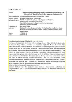 Systematische Auswertung des aktuellen Forschungsstands zum Kaiserschnitt - Los 2: Zeitpunkt des geplanten Kaiserschnitts