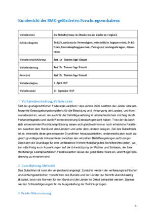 Seit der grundgesetzlichen Föderalismusreform I des Jahres 2006 besitzen die Länder eine um-fassende Gesetzgebungskompetenz für die Besoldung und Versorgung der Landes- und Kommunalbeamten, wovon sie auch für die Beihilfegewährung in unterschiedlichem Umfang durch Parlamentsgesetz und durch Rechtsverordnung Gebrauch gemacht haben. Trotz der dadurch sich entwickelnden Rechtszersplitterung lassen sich gleichwohl immer noch erhebliche Parallelen zwischen dem Bund und den Ländern und unter den Ländern belegen. Ziel des Gutachtens ist es, einerseits diese gemeinsamen Grundlinien herauszuarbeiten, andererseits aber auch zu-gleich grundlegende Unterschiede zwischen den einzelnen Beihilferegelungen aufzuzeigen. Dies kann die Grundlage für eine umfassende Weiterentwicklung des Beihilferechts bieten, wobei mittelfristig auch Auswirkungen auf die Unterstützung der Richter und Soldaten, der freie Heilfürsorge beanspruchenden Polizeibeamten sowie die gesetzliche Kranken- und Pflegeversicherung zu erwarten sind.