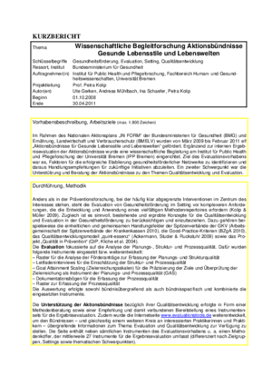 Wissenschaftliche Begleitforschung Aktionsbündnisse Gesunde Lebensstile und Lebenswelten