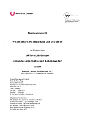 Wissenschaftliche Begleitung und Evaluation der Förderinitiative Aktionsbündnisse Gesunde Lebensstile und Lebenswelten