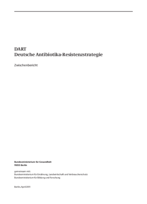 Der hier vorgelegte Zwischenbericht stellt den Stand der Umsetzung der Deutschen Antibiotika-Resistenzstrategie (DART) im humanmedizinischen und veterinärmedizinischen Bereich vor. Er wurde in Zusammenarbeit mit dem BMELV, dem BMBF, der Arbeitsgruppe Infektionsschutz der Arbeitsgemeinschaft der Obersten Landesgesundheitsbehörden (AGI), der Deutschen Krankenhausgesellschaft e.V.(DKG), dem GKV-Spitzenverband, der Kassenärztlichen Bundesvereinigung (KBV) und dem Institut für Hygiene und Umweltmedizin der Charité Universitätsmedizin Berlin erstellt.