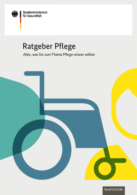Alle Publikationen zum Thema "Pflege" Pflegeleistungen zum Nachschlagen Pflegeleistungen zum Nachschlagen Ratgeber Pflege Ratgeber Pflege Ratgeber Demenz Ratgeber Demenz Filtern Sie die Liste Suchwort Bitte Suchbegriff eingeben Zeitraum: Datum von (TT.MM.JJJJ) Datum bis (TT.MM.JJJJ) Suche starten Ministerium Im Dialog 16 Broschüre Stand: Februar 2026 Seiten: 36 Artikel-Nr.: BMG-G-12212 PDF-Datei herunterladen (barrierefrei, 7,25 MB) Bestellen Pflege Notizblock „Pflegenetzwerk Deutschland“ Broschüre Stand: Februar 2026 Seiten: 50 Artikel-Nr.: BMG-A-10045 Bestellen Pflege Ratgeber Pflege Broschüre Stand: Januar 2026 Seiten: 184 Artikel-Nr.: BMG-P-07055 PDF-Datei herunterladen (barrierefrei, 7,00 MB) Bestellen Pflege Pflegeleistungen zum Nachschlagen Broschüre Stand: Januar 2026 Seiten: 72 Artikel-Nr.: BMG-P-11025 PDF-Datei herunterladen (barrierefrei, 2,21 MB) Bestellen Pflege Pflegebedürftig. Was nun? (deutsch) Flyer Stand: Januar 2026 Seiten: 8 Artikel-Nr.: BMG-P-07053 PDF-Datei herunterladen (nicht barrierefrei, 215,27 KB) Bestellen Pflege Studie zur Entbürokratisierung des Verfahrens zum Wohngeldbezug für Heimbewohnerinnen und Heimbewohner in der stationären Langzeitpflege inkl. Fachgespräch Abschlussbericht Stand: Juni 2025 Seiten: 145 PDF-Datei herunterladen (barrierefrei, 1,51 MB) nur als Download verfügbar Pflege Fachtag „Chancen und Herausforderungen autonomer ambulanter Pflegeteams“ Abschlussbericht Kurzbericht Alle Dokumente anzeigen (2) Pflege Ratgeber Demenz Broschüre Poster Alle Dokumente anzeigen (2) Pflege Magazin „NAH & DRAN“ – Pflegenetzwerk Deutschland Periodikum Stand: Mai 2025 Seiten: 48 Artikel-Nr.: BMG-P-11034 PDF-Datei herunterladen (barrierefrei, 4,65 MB) Bestellen Pflege Prävention von Pflegebedürftigkeit - Dokumentation von Fachgesprächen zur Prävention von Pflegebedürftigkeit im ambulanten Bereich Fachgutachten Stand: April 2025 Seiten: 61 PDF-Datei herunterladen (barrierefrei, 1,18 MB) nur als Download verfügbar Pflege Berichtspflicht der Länder zu Förderung und Investitionskosten von Pflegeeinrichtungen (Berichtsjahr 2023) Abschlussbericht Stand: Januar 2025 Seiten: 86 PDF-Datei herunterladen (barrierefrei, 1,23 MB) nur als Download verfügbar Seite 1 Seite 2 Seite 3 Platzhalter weitere Seiten … Seite 13 Nächste Seite