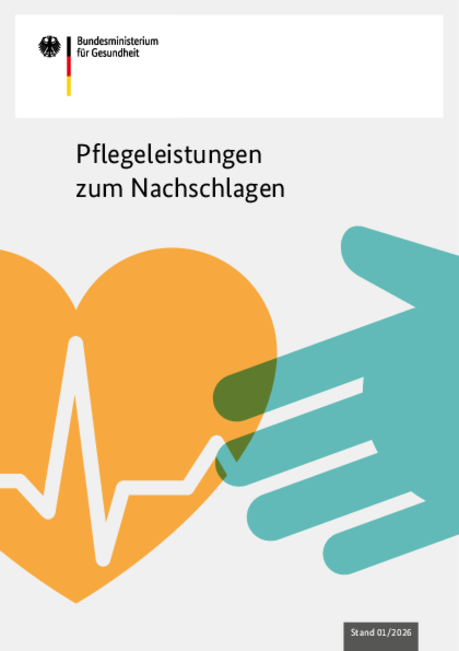 Alle Publikationen zum Thema "Pflege" Pflegeleistungen zum Nachschlagen Pflegeleistungen zum Nachschlagen Ratgeber Pflege Ratgeber Pflege Ratgeber Demenz Ratgeber Demenz Filtern Sie die Liste Suchwort Bitte Suchbegriff eingeben Zeitraum: Datum von (TT.MM.JJJJ) Datum bis (TT.MM.JJJJ) Suche starten Ministerium Im Dialog 15 Broschüre Stand: Oktober 2025 Seiten: 36 Artikel-Nr.: BMG-G-11199 PDF-Datei herunterladen (barrierefrei, 8,48 MB) Bestellen Pflege Pflegeleistungen zum Nachschlagen Broschüre Stand: Januar 2026 Seiten: 72 Artikel-Nr.: BMG-P-11025 PDF-Datei herunterladen (barrierefrei, 2,21 MB) Bestellen Pflege Pflegebedürftig. Was nun? (deutsch) Flyer Stand: Januar 2026 Seiten: 8 Artikel-Nr.: BMG-P-07053 PDF-Datei herunterladen (nicht barrierefrei, 215,27 KB) Bestellen Pflege Ratgeber Pflege Broschüre Stand: Juli 2025 Seiten: 184 Artikel-Nr.: BMG-P-07055 PDF-Datei herunterladen (barrierefrei, 5,42 MB) Bestellen Pflege Studie zur Entbürokratisierung des Verfahrens zum Wohngeldbezug für Heimbewohnerinnen und Heimbewohner in der stationären Langzeitpflege inkl. Fachgespräch Abschlussbericht Stand: Juni 2025 Seiten: 145 PDF-Datei herunterladen (barrierefrei, 1,51 MB) nur als Download verfügbar Pflege Fachtag „Chancen und Herausforderungen autonomer ambulanter Pflegeteams“ Abschlussbericht Kurzbericht Alle Dokumente anzeigen (2) Pflege Ratgeber Demenz Broschüre Poster Alle Dokumente anzeigen (2) Pflege Magazin „NAH & DRAN“ – Pflegenetzwerk Deutschland Periodikum Stand: Mai 2025 Seiten: 48 Artikel-Nr.: BMG-P-11034 PDF-Datei herunterladen (barrierefrei, 4,65 MB) Bestellen Pflege Prävention von Pflegebedürftigkeit - Dokumentation von Fachgesprächen zur Prävention von Pflegebedürftigkeit im ambulanten Bereich Fachgutachten Stand: April 2025 Seiten: 61 PDF-Datei herunterladen (barrierefrei, 1,18 MB) nur als Download verfügbar Pflege Berichtspflicht der Länder zu Förderung und Investitionskosten von Pflegeeinrichtungen (Berichtsjahr 2023) Abschlussbericht Stand: Januar 2025 Seiten: 86 PDF-Datei herunterladen (barrierefrei, 1,23 MB) nur als Download verfügbar Pflege Entwicklung eines Konzeptes für ein Verfahren zur Ermittlung einer angemessenen Personalausstattung in Notaufnahmen Abschlussbericht Kurzbericht Alle Dokumente anzeigen (2) Seite 1 Seite 2 Seite 3 Platzhalter weitere Seiten … Seite 13 Nächste Seite